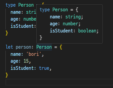 사실 난 type이 더 좋다. 커서를 올렸을 때, type을 쓰면 무슨 타입이 써있는지 한 눈에 볼 수 있어서 좋다.... 하지만, 멘토님은 interface와 type을 섞어 쓴다고 하셨다. 그럼 언제 어느상황에 무엇을 써야할까?