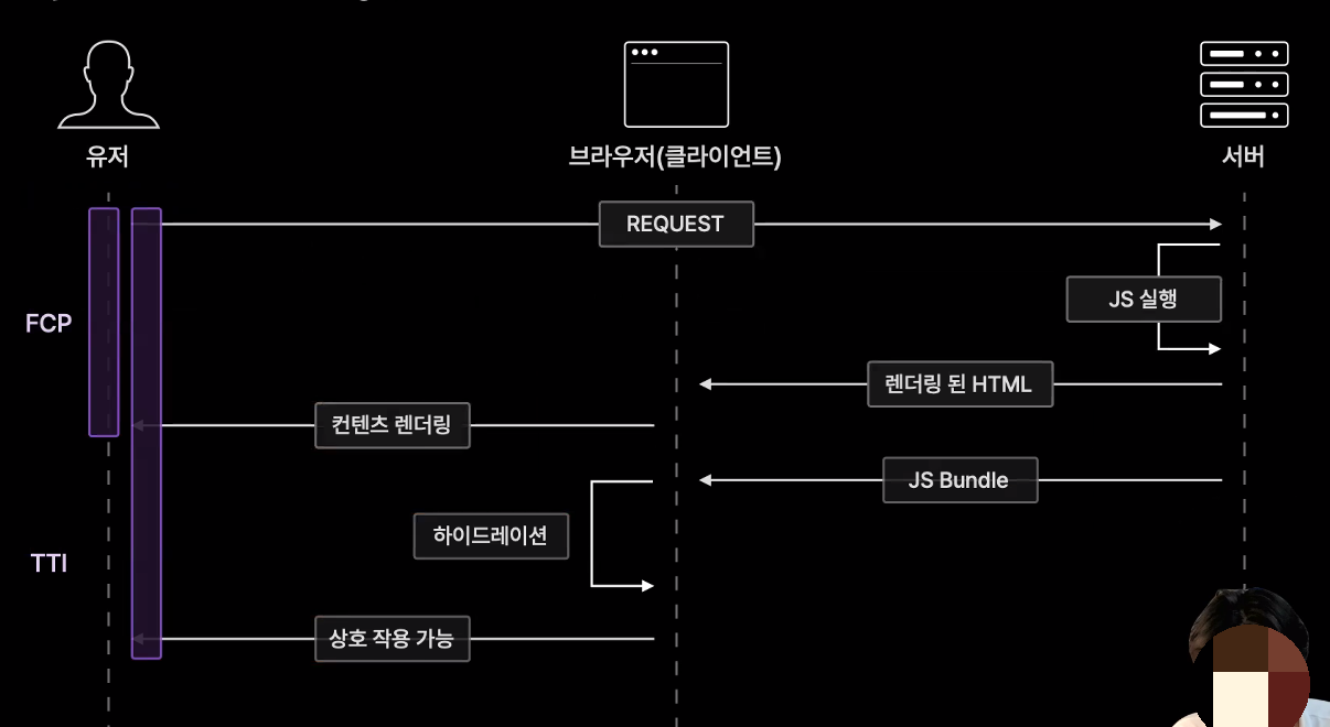 - 서버에서 페이지를 미리 렌더링하여 HTML을 전송하면, 클라이언트에서 빠르게 첫 번째 콘텐츠를 표시할 수 있다.