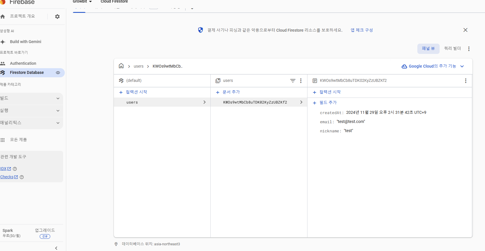 - Firestore의 setDoc 함수를 사용해 users 컬렉션에 사용자 UID를 문서 ID로 설정한다.
