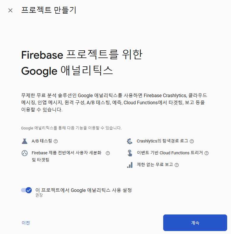 1. 아래 링크로 접속해 console로 이동해 프로젝트를 생성한다.