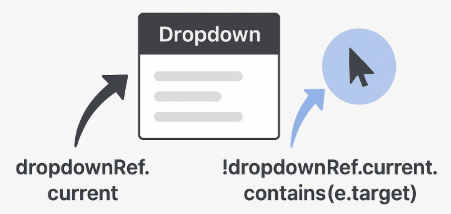 드롭다운 루트 div에 ref를 연결해두면, 클릭한 요소가 드롭다운 내부인지 외부인지 확인할 수 있다.