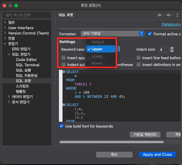 DBeaver Uppercase 포맷 설정하기
